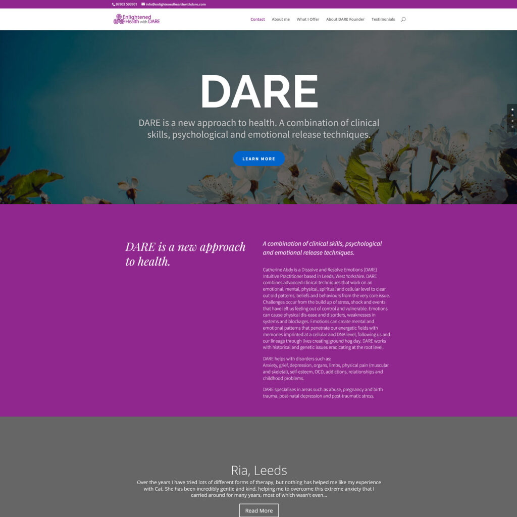 Catherine Abdy is a Dissolve and Resolve Emotions (DARE) Intuitive Practitioner based in Leeds, West Yorkshire. DARE combines advanced clinical techniques that work on an emotional, mental, physical, spiritual and cellular level to clear out old patterns, beliefs and behaviours from the very core issue.